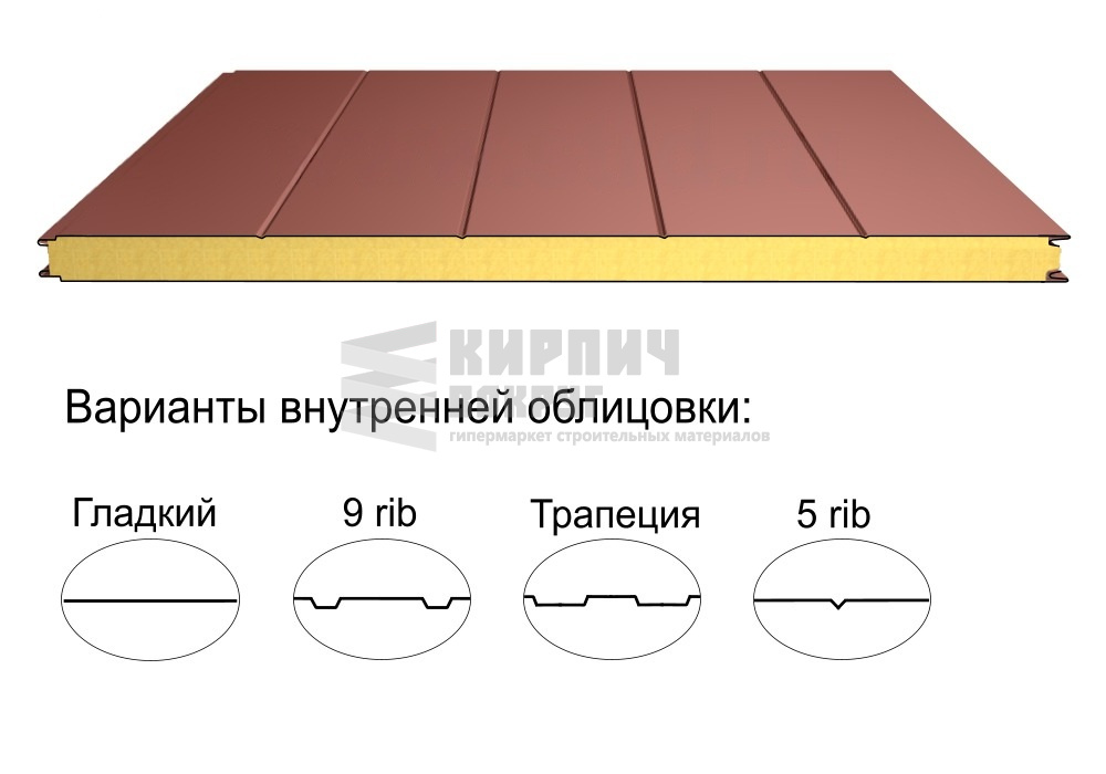 В интернет-магазине "Кирпич Вокруг" Вы можете купить Стеновая трёхслойная сэндвич-панель 5 rib 100мм 1000мм с видимым креплением минеральная вата Полиэстер Доборник в Севастополе, а наши специалисты готовы вам помочь с выбором по адресу: , или оказать консультацию по телефону: .