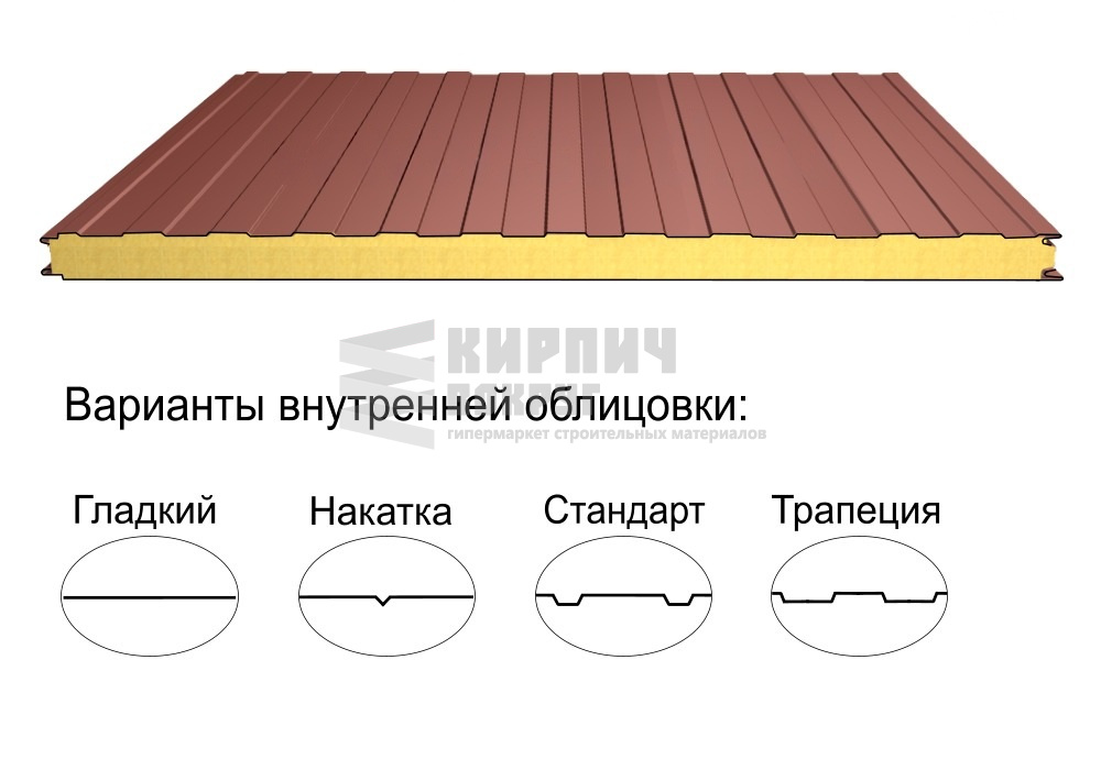 Строительный материал, имеющий трёхслойную структуру, состоящую из двух листов металла и слоя утеплителя между ними.